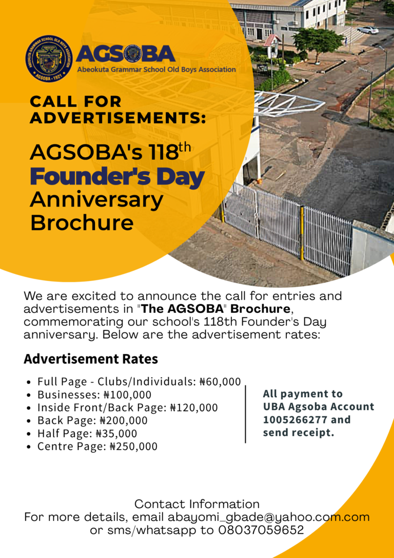 The AGSOBA (Abeokuta Grammar School Old Boys Association) Scholarship Initiative is dedicated to empowering academically gifted and deserving students of Abeokuta Grammar School.